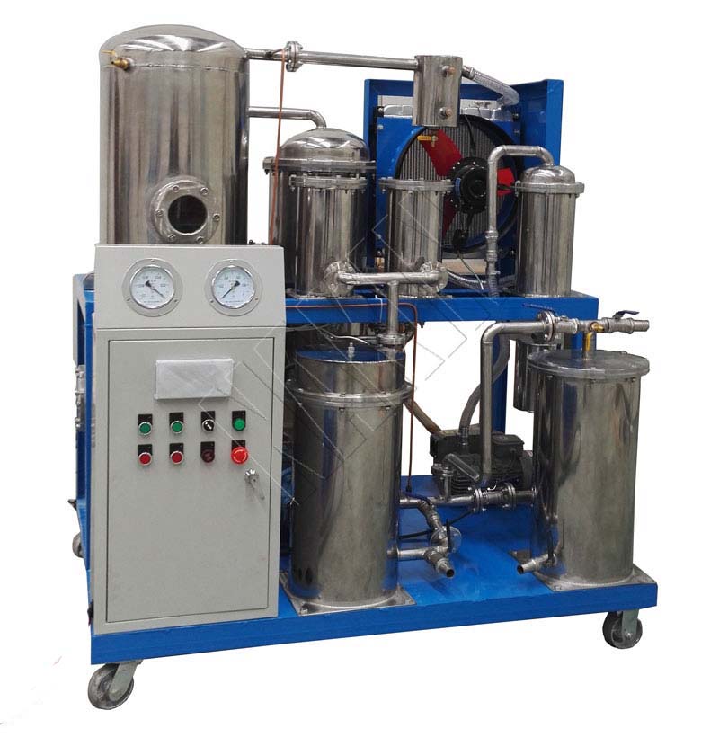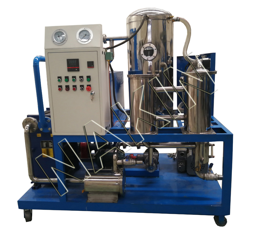 TYK系列抗燃油真空濾油機是專門針對不合格的磷酸脂抗燃油而設計的新一代EH油真空濾油機,本機能對劣化的抗燃油再生凈化處理,有效除去磷酸脂抗燃油中的酸,色素,氣體,水分和雜質。本機采用抗酸,抗腐蝕的材料及真空脫水、多級精密過濾、新型離子交換樹脂脫酸等凈油技術,有效的保證過濾后的抗燃油達到合格指標。該產(chǎn)品廣泛用于大中型冶金,燃氣輪機,火力發(fā)電機組等高溫高壓下操作的液壓,調速系統(tǒng),磷酸酯抗燃油系統(tǒng),機械系統(tǒng)的抗燃油液壓系統(tǒng),適用于在線運行,移動濾油,新油加注等工作。