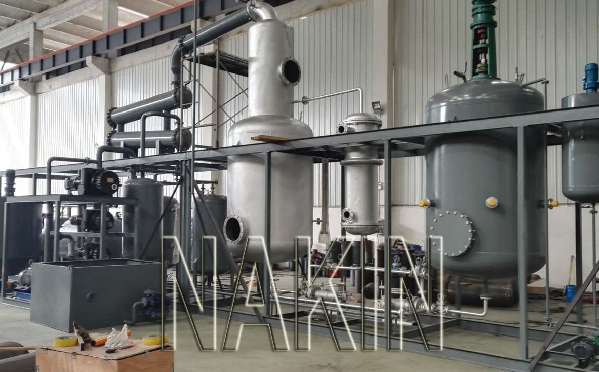 JZC廢機油再生蒸餾設(shè)備主要通過蒸餾對廢油進行凈化再生處理,根據(jù)廢油的不同污染源及所含雜質(zhì)特性,能有效除去廢油中的磨屑,瀝青質(zhì),蠟質(zhì),雜質(zhì),水份,酸質(zhì),有機酸和無機酸等。在廢油中,油品變質(zhì)只是其中部分烴類,其余大部分烴類組成仍是潤滑油的主要粘度載體,只要除去變質(zhì)物及雜質(zhì),就能把廢油再生成質(zhì)量符合要求的基礎(chǔ)油,然后按照需要加入各種添加劑,制得所需要的成品油。主要處理的廢油有(廢機油、廢液壓油、廢齒輪油、廢黑油、廢淬火油、廢重油、廢柴油、廢潤滑油、 廢輪胎油、廢塑料油、廢切削油等)。JZC廢機油再生蒸餾設(shè)備屬于節(jié)能環(huán)保產(chǎn)品,在處理過程中廢氣由專門的廢氣回收系統(tǒng)處理,無空氣污染,處理后的油泥殘渣可作為燃料再次使用。